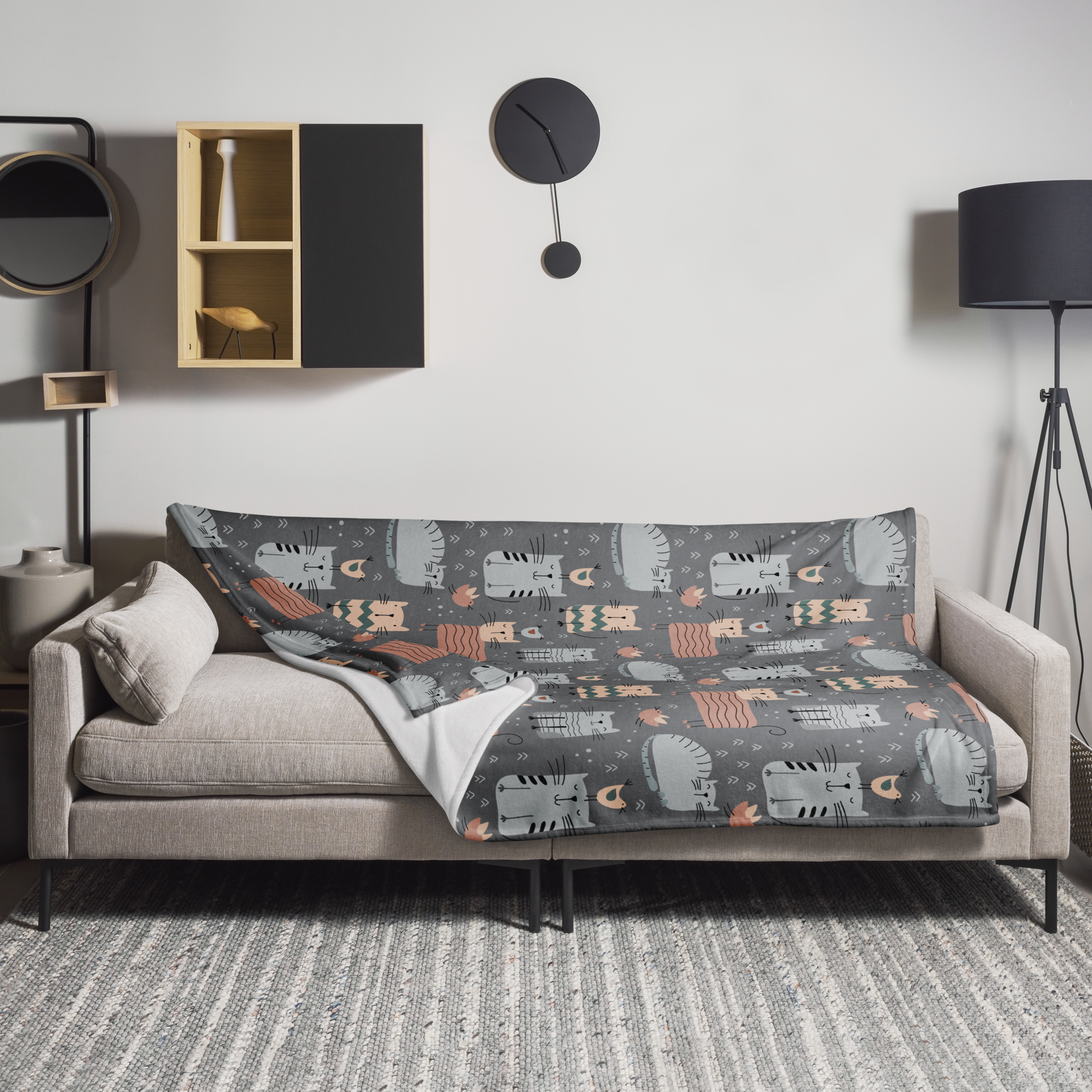 Transform your couch into the ultimate comfort zone with a Cat Pattern throw blanket. Measuring a luxurious 50" x 60", it will be the first thing you grab when there’s a kitty on your lap and you can’t move. We predict that it will instantly be claimed by your furry friends.