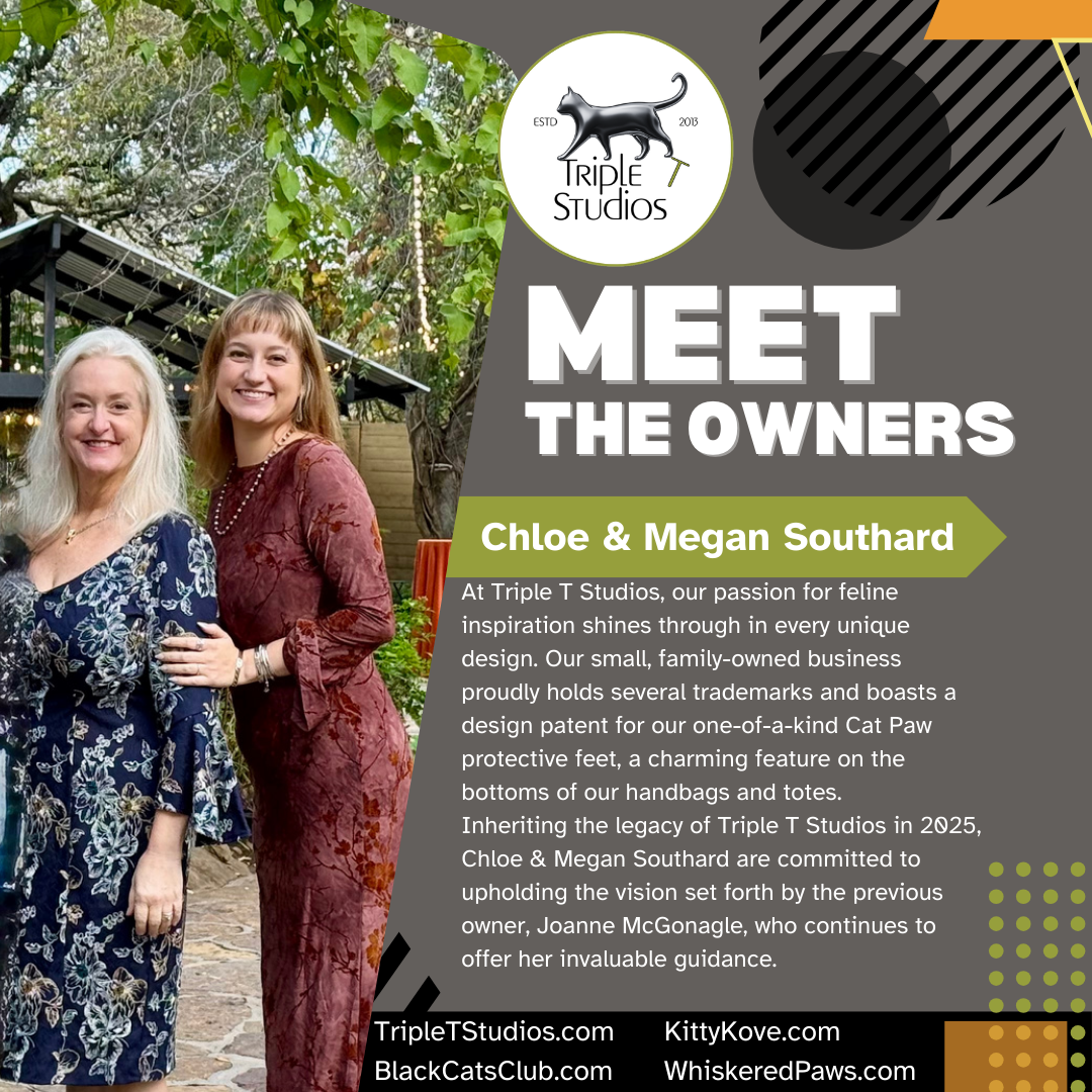 Our original designs take time and a great deal of thought. We have a design patent for our cat paw protective feet. You will find these super cute cat paws on the bottom of select handbags and totes.